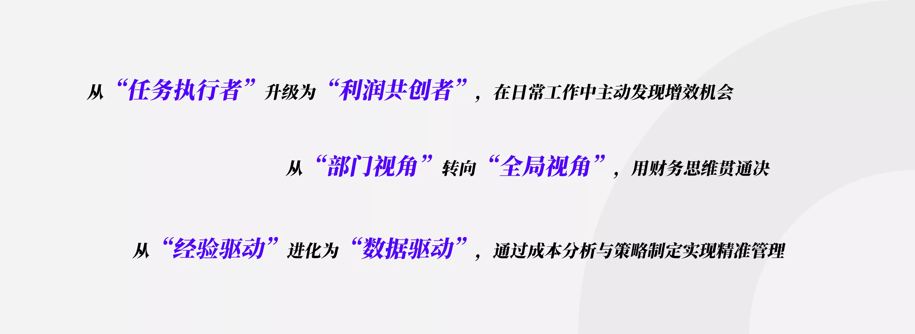 許多管理者誤以為成本控制是財務部門的專屬職責,但現(xiàn)實中,從差旅報銷到人員配置,從流程冗余到資源浪費,每個環(huán)節(jié)都暗藏增效空間。課程通過模擬企業(yè)運營,引導學員發(fā)現(xiàn)隱性成本,例如:低效審批流程如何延長項目周期、人員技能錯配如何降低產(chǎn)出效益。學員將在動態(tài)決策中學會平衡短期目標與長期收益,從被動執(zhí)行者轉(zhuǎn)變?yōu)橹鲃觾?yōu)化者,通過跨部門協(xié)作推動系統(tǒng)性降本。