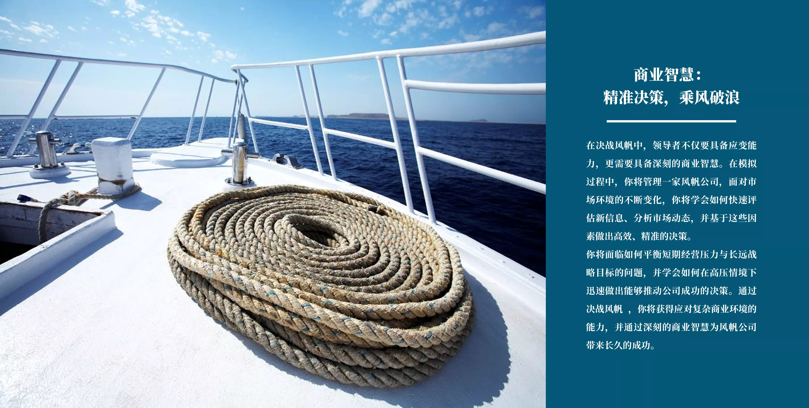 學(xué)員化身風(fēng)帆設(shè)備公司管理者,在瞬息萬(wàn)變的市場(chǎng)中爭(zhēng)奪資源、生產(chǎn)產(chǎn)品并捕捉商機(jī)。既要與競(jìng)爭(zhēng)對(duì)手談判獲取關(guān)鍵材料,又需靈活調(diào)整策略應(yīng)對(duì)需求波動(dòng)——繁榮期全力擴(kuò)產(chǎn)沖刺利潤(rùn),蕭條期迅速轉(zhuǎn)型止損求生。